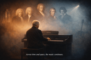 What Music Is for Me I was trained to play music correctly. But I was never interested in correctness. For me, music exists before the scoreβbefore notation, interpretation, or execution. It arrives as impulse, memory, intuition. Sometimes it falls from the ceiling. Sometimes it waits quietly for decades. I listen first. I play by ear. Only laterβif at allβdo I consult the page. This is why I approach Bach, Mozart, Beethoven, and the Beatles not as distant masters to be obeyed, but as companions in a long conversation across time. What matters is not fidelity to ink, but fidelity to the music itself. The musical collage that accompanies this text is that conversation made audible. Across time and space, the music continues. - πΌ A JOURNEY WITH MOZART – a musical series