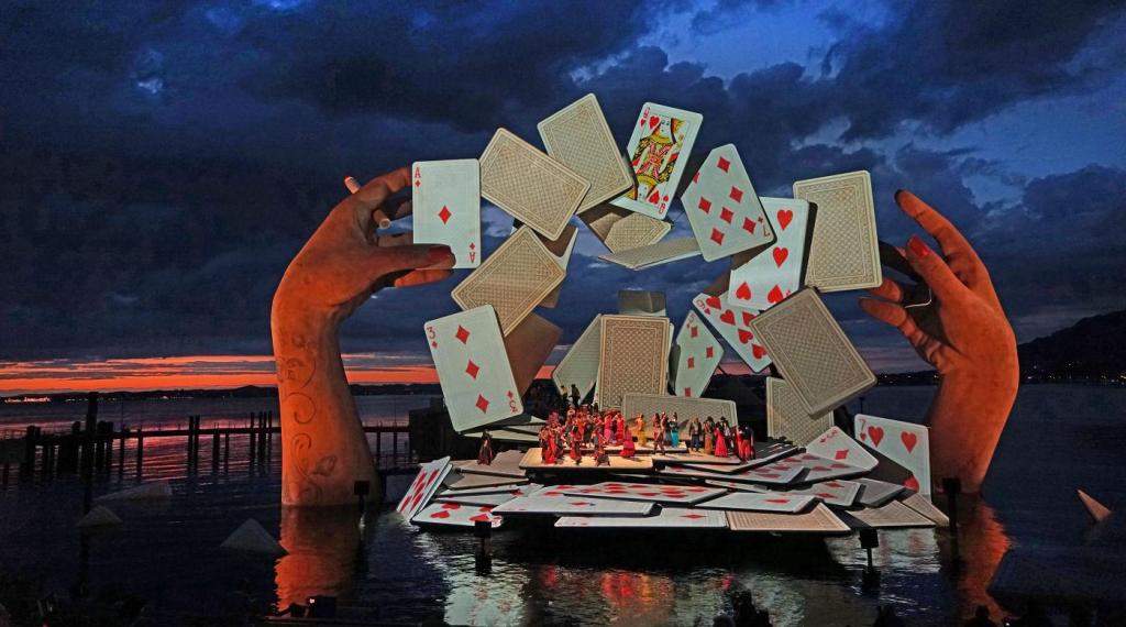 thinking how this opera might outlast even the cards raining down from the set.