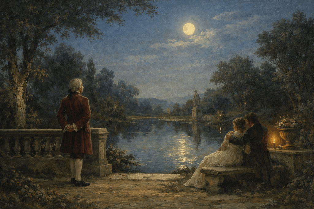 Here, Wolfgang Amadeus Mozart steps out of history and into intimacy — not as a guide, but as a companion.
